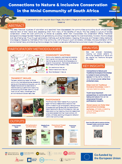 Thus, through participatory methods, such as Participatory Mapping, Photovoice, and Transect Walks, traditional knowledge is mapped by members of the Mnisi community, with a focus on youth and elders. Ultimately, the documentation of this environmental history and blending the knowledge into modern conservation efforts aims to promote inclusion in the National Park.